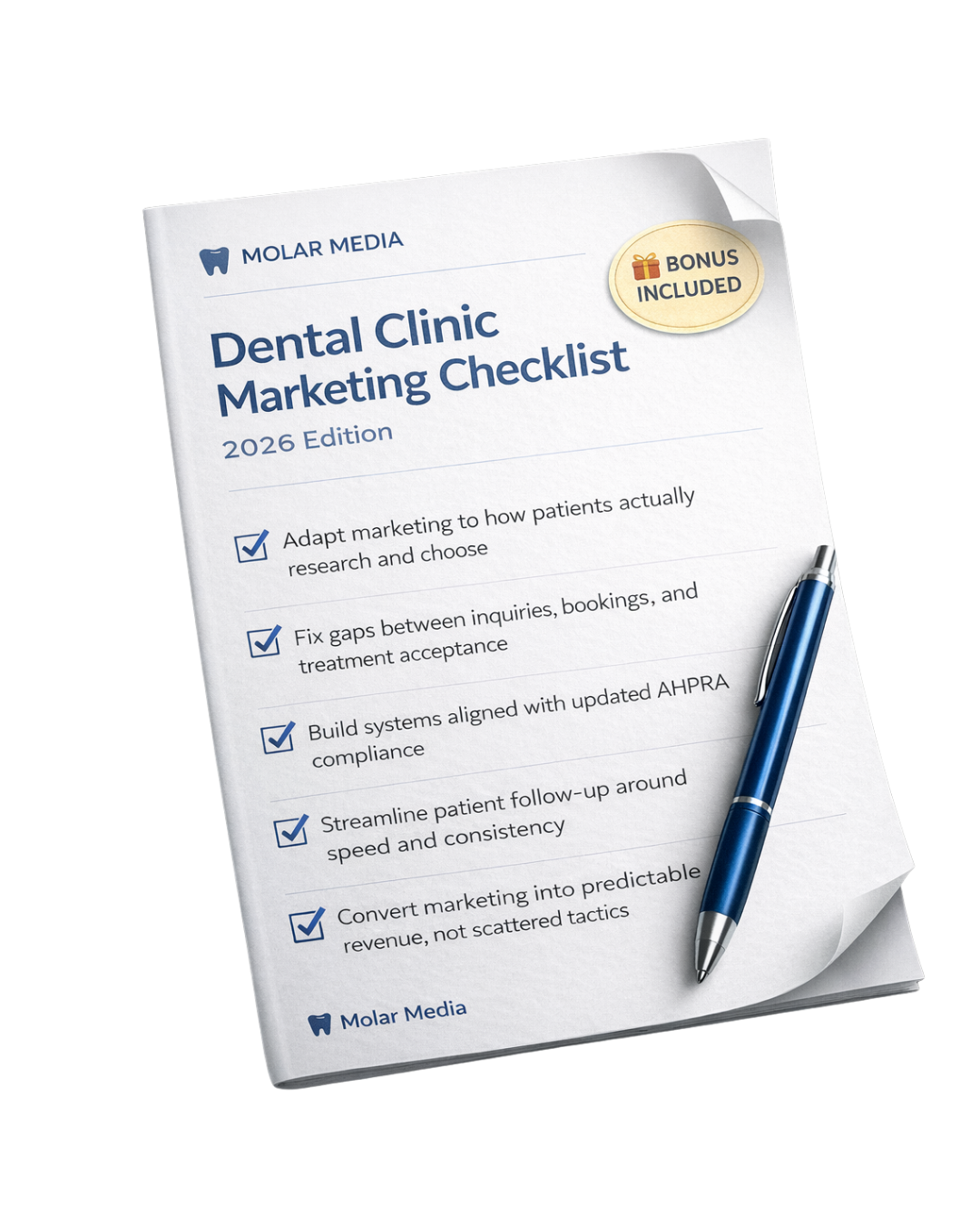You’ll also receive the Dental Clinic Marketing Checklist — a practical bonus to help you review your current marketing funnel- what actually matters, spot gaps, and prioritise your next steps.